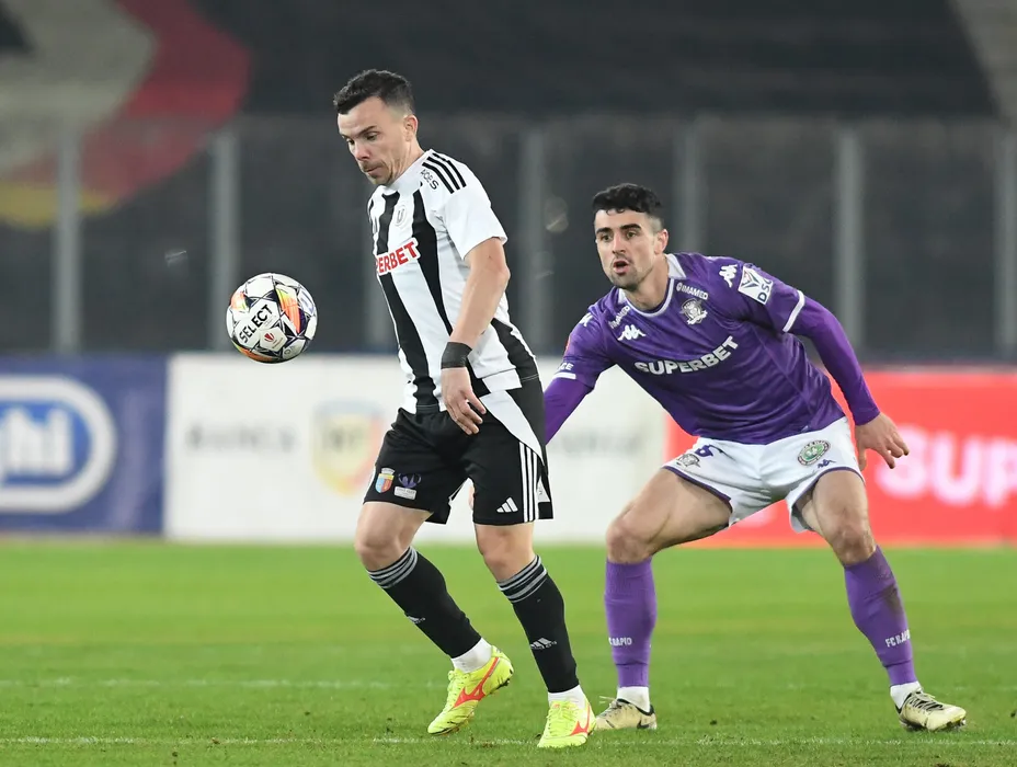 Dan Nicolae Nistor si Alexandru Stefan Pascanu in meciul de fotbal dintre FC Universitatea Cluj si FC Rapid 1923 Bucuresti, contand pentru Superliga Superbet, desfasurat pe Stadionul Cluj Arena din Cluj-Napoca, sambata 1 februarie 2025. © FOTO: Flaviu Buboi/SPORT PICTURES