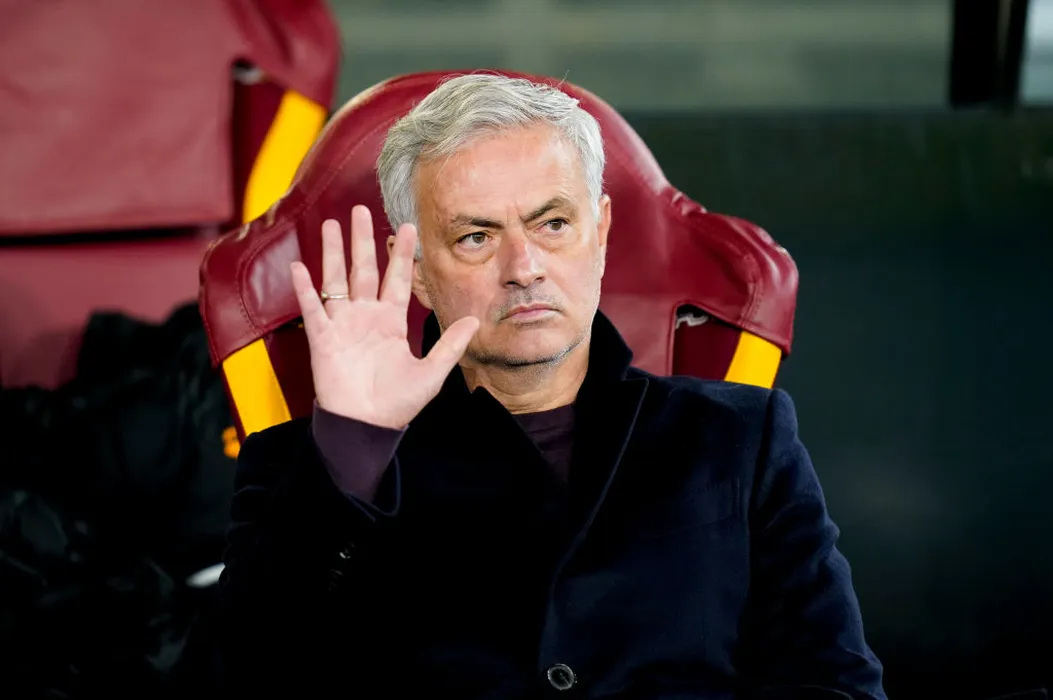 Jose' Mourinho head coach of AS Roma gestures during the UEFA Europa League Group G match between AS Roma and FC Sheriff at Stadio Olimpico on December 14, 2023 in Rome, Italy. (Photo by Giuseppe Maffia/NurPhoto via Getty Images)