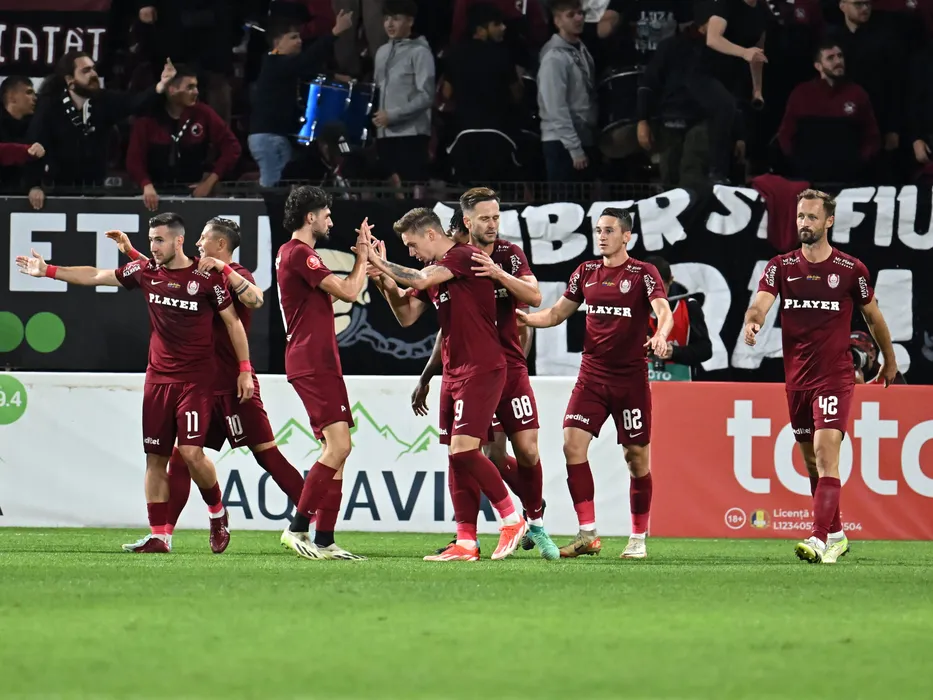 Bucurie a fotbalistilor clujeni Simao Pedro Dias Da Rocha, Matija Boben, Constantin Adrian Păun, Ciprian Ioan Deac, Alin Răzvan Fica si Louis Munteanu dupa un gol marcat în meciul de fotbal dintre CFR Cluj si FCSB, contând pentru Superliga Superbet, desfășurat pe Stadionul Dr. Constantin Raduescu din Cluj Napoca, duminica 15 septembrie 2024. © FOTO: Răzvan Pasarica/SPORT PICTURES