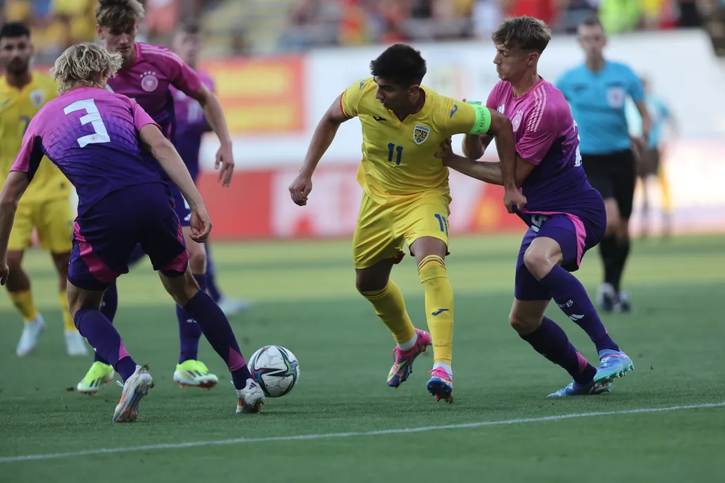 Alexandru Musi în meciul de fotbal dintre România U20 și Germania U20, contând pentru Elite League U20, desfășurat pe Stadionul Francisc von Neuman din Arad, joi 5 septembrie 2024. © FOTO: Ciprian PETCUȚ/SPORT PICTURES