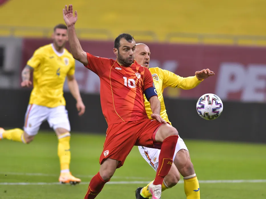 Goran Pandev si Vlad Chiriches in meciul de fotbal dintre Romania si Macedonia de Nord, din cadrul Preliminariilor Campionatului Mondial 2022, desfasurat fara spectatori pe Arena Nationala din Bucuresti, joi 25 martie 2021. © FOTO:Razvan Pasarica/SPORT PICTURES