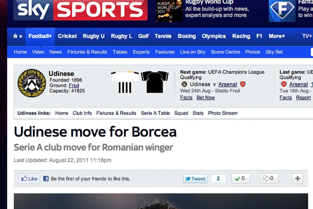 SENZAȚIE!** Asta e știrea ZILEI: „Udinese îl ofertează pe Borcea” :)