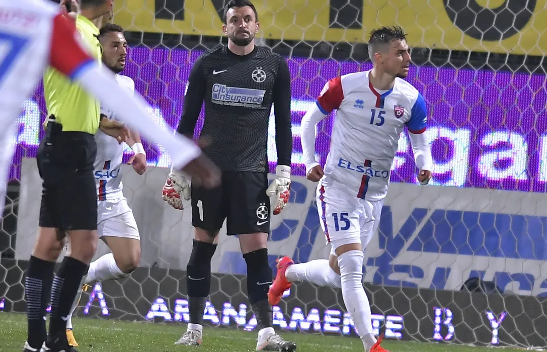 Stefan Askovski alaturi de Realdo Fili se bucura dupa un gol marcat in poarta lui Catalin George Straton in meciul de fotbal dintre FCSB si FC Botosani, contand pentru play-off-ul Ligii 1 Casa Pariurilor, desfasurat fara spectatori pe Stadionul Marin Anastasovici din Giurgiu, diuminica 18 aprilie 2021. © FOTO:Razvan Pasarica/SPORT PICTURES