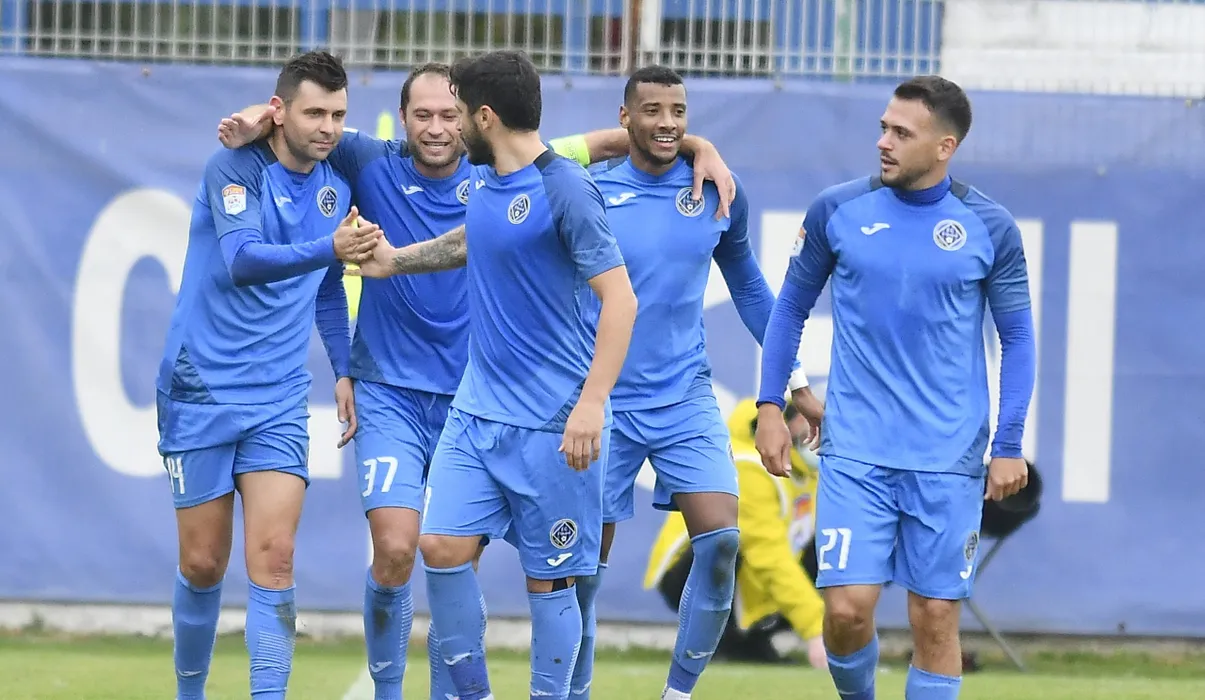 Raul Andrei Rusescu se bucura alaturi de Eugeniu Cebotaru, Georgi Velikov Pashov, Mihai Dobrescu si Cristian Tanase dupa un gol marcat in meciul de fotbal dintre Academica Clinceni si Sepsi OSK Sfantu Gheorghe, contand pentru Liga 1 Casa Pariurilor, desfasurat pe Clinceni Arena din Clinceni, sambata 31 octombrie 2020. © FOTO:Razvan Pasarica/SPORT PICTURES