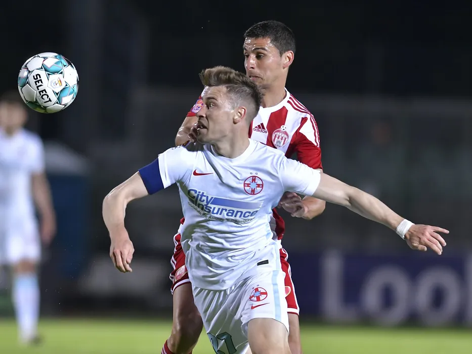 Gabriel Cristian Vasvari si Darius Dumitru Olaru in meciul de fotbal dintre Sepsi OSK Sfantu Gheorghe si FCSB, contand pentru Play-off-ul Ligii 1 Casa Pariurilor, desfasurat fara spectatori pe Stadionul Municipal din Sfantu Gheorghe, duminica 16 mai 2021. © FOTO:Razvan Pasarica/SPORT PICTURES