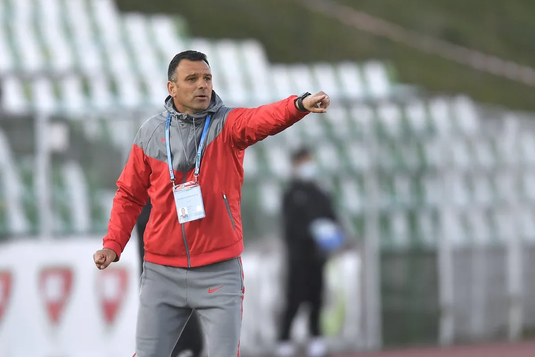 Anton Petrea, antrenorul echipei FCSB, urmareste meciul de fotbal contra formatiei Sepsi OSK din etapa 30 a Ligii 1, disputat pe stadionul Municipal din Sfantu Gheorghe, sambata,10 aprilie 2021. ALEX NICODIM / MEDIAFAX FOTO