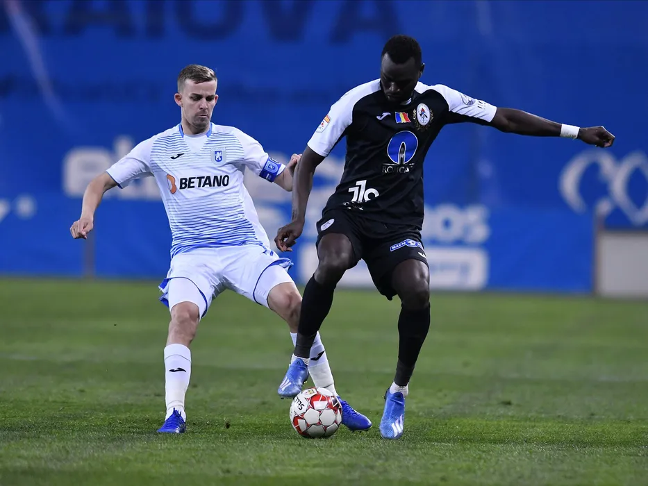 Nicusor Bancu si Boubacar Fofana in meciul de fotbal dintre Universitatea Craiova si Gaz Metan Medias, contand pentru Liga 1 Casa Pariurilor, disputat pe Stadionul Ion Oblemenco din Craiova, duminica 1 martie 2020. © FOTO:Razvan Pasarica/SPORT PICTURES