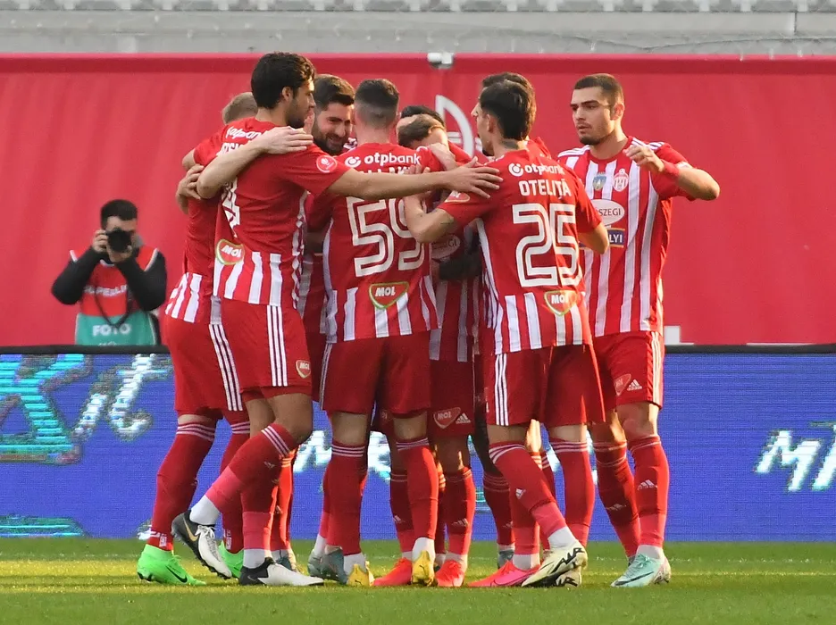 Fotbaliștii covăsneni se bucură după un gol marcat în meciul de fotbal dintre Sepsi OSK Sfântu Gheorghe și FC Voluntari contând pentru SuperLiga Superbet, desfășurat pe Stadionul SEPSI Arena OSK din Sfântu Gheorghe, luni 4 martie 2024. © FOTO: Bogdan BALAS/SPORT PICTURES