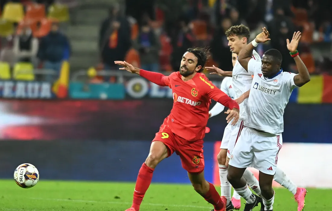 Andrea Compagno, Juri Cisotti si Tobasegnou Francois Yabre in meciul de fotbal dintre FCSB si Otelul Galati, din cadrul Superligii Superbet, desfasurat pe Arena Nationala din Bucuresti, duminica 3 decembrie 2023. © FOTO:Razvan Pasarica/SPORT PICTURES