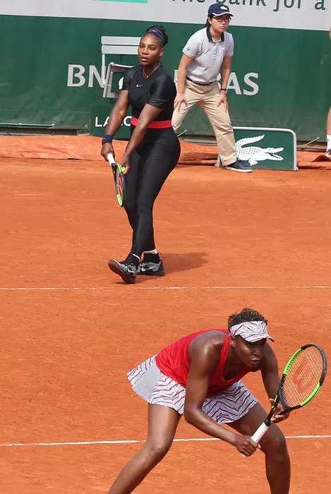 Serena et Venus Williams en double féminin lors des internationaux de tennis de Roland Garros ŕ Paris, France, le 3 juin 2018. © Dominique Jacovides - Cyril Moreau/Bestimage Serena and Venus Williams during the Roland Garros French Open, in Paris, France, on June 3rd, 2018.,Image: 373773556, License: Rights-managed, Restrictions: , Model Release: no