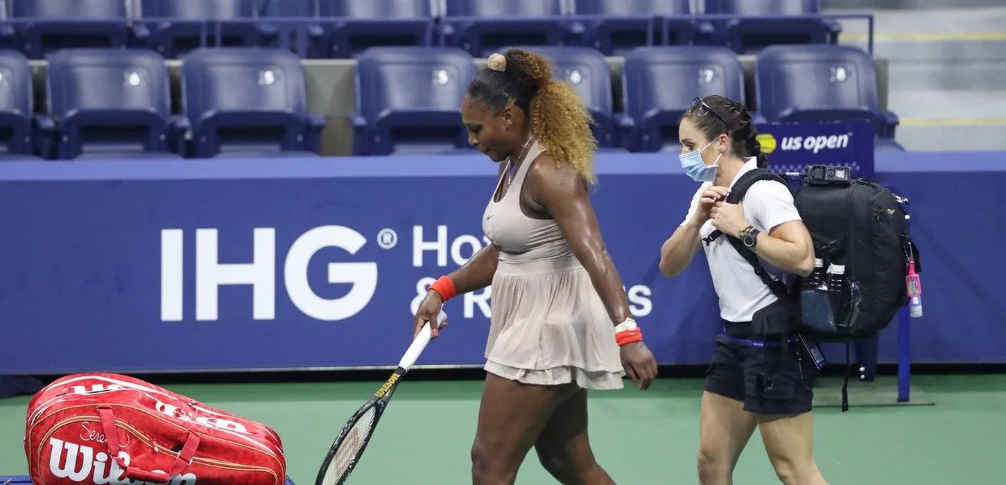 NEW YORK, NEW YORK - SEPTEMBER 10: Serena Williams of the United States walks to her seat due to an injury in the third set during her Women's Singles semifinal match against Victoria Azarenka of Belarus on Day Eleven of the 2020 US Open at the USTA Billie Jean King National Tennis Center on September 10, 2020 in the Queens borough of New York City. Matthew Stockman,Image: 557370318, License: Rights-managed, Restrictions: , Model Release: no, Credit line: Profimedia
