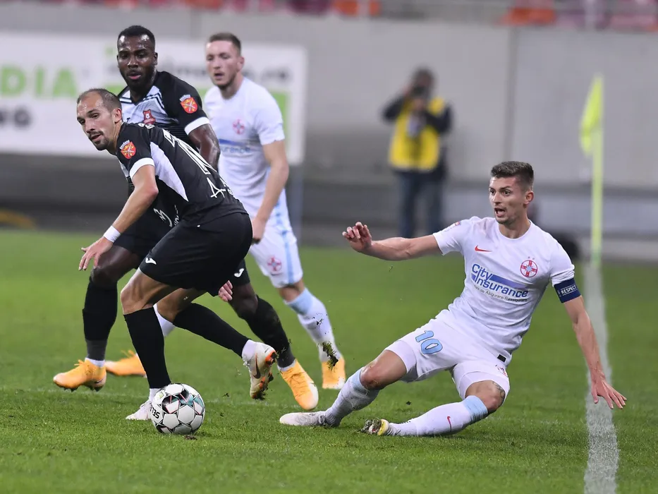 Romario Santos Pires, Dias David Caiado si Florin Lucian Tanase in meciul de fotbal dintre FCSB si AFC Hermannstadt, contand pentru Liga 1 Casa Pariurilor, desfasurat fara spectatori pe Arena Nationala din Bucuresti, luni 26 octombrie 2020. © FOTO:Razvan Pasarica/SPORT PICTURES