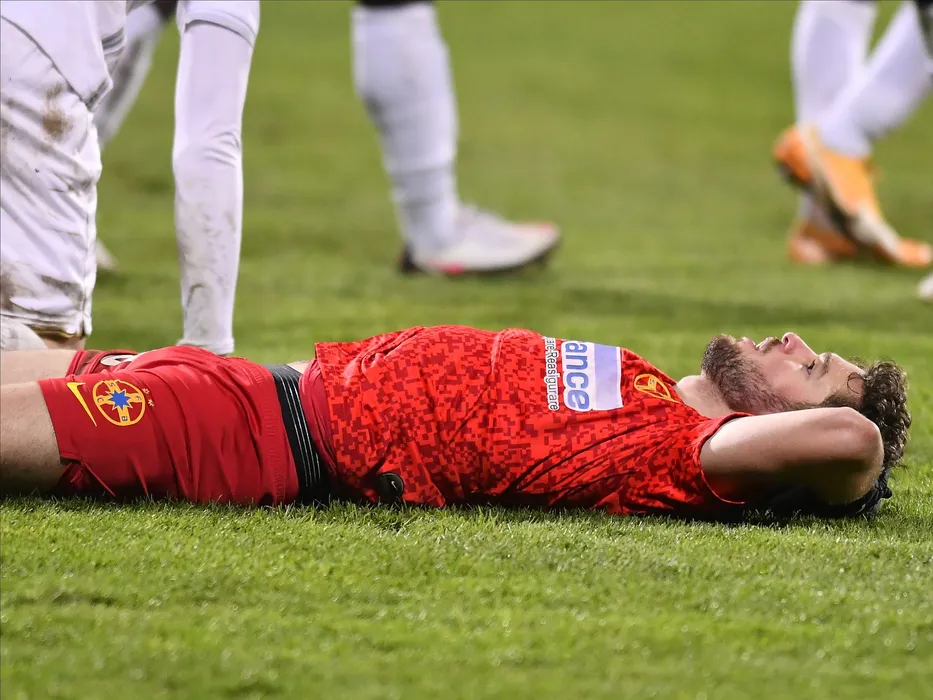 Sergiu Florin Bus la pamant in meciul de fotbal dintre Gaz Metan Medias si FCSB, contand pentru Liga 1 Casa Pariurilor, desfasurat fara spectatori pe Stadionul Municipal din Medias, luni 23 noiembrie 2020. © FOTO:Razvan Pasarica/SPORT PICTURES