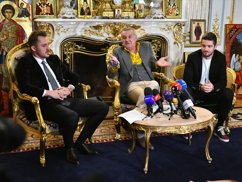 Bogdan Apostu si Gigi Becali la o conferinta de presa de prezentare a jucatorului Sergiu Bus la FCSB desfasurata la Sediul din Aleea Alexandru din Bucuresti, marti 14 iulie 2020.© FOTO:Razvan Pasarica/SPORT PICTURES