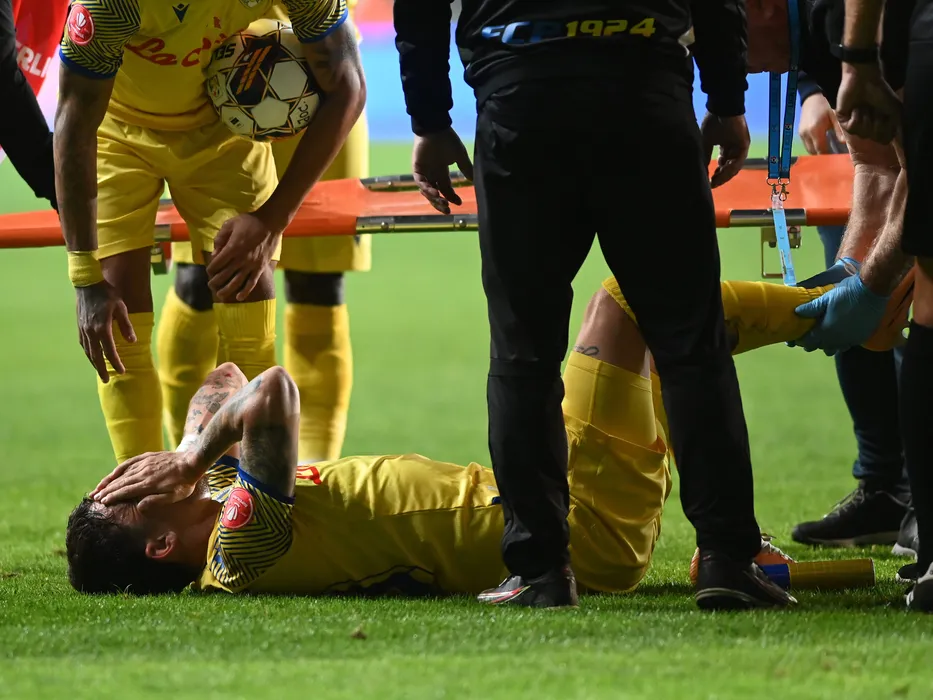Sergiu Catalin Hanca accidentat in meciul de fotbal dintre Petrolul Ploiesti si FCSB, din cadrul Superligii Superbet, desfasurat pe Stadionul Ilie Oana din Ploiesti, sambata 28 octombrie 2023. © FOTO:Razvan Pasarica/SPORT PICTURES