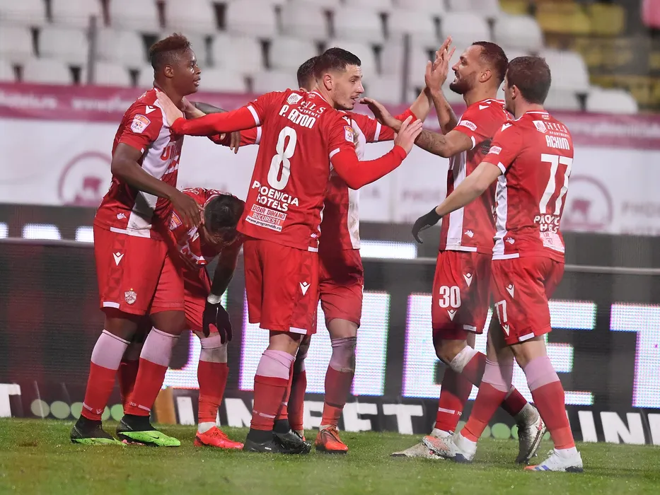 Bucurie a fotbalistilor dinamovisti cu Magaye Serigne Gueye, Paul Viorel Anton si Florin Bejan dupa un gol marcat in meciul de fotbal dintre Dinamo Bucuresti si CSM Politehnica Iasi, contand pentru Liga 1 Casa Pariurilor, desfasurat fara spectatori pe stadionul Dinamo din Bucuresti, vineri 11 decembrie 2020. © FOTO:Razvan Pasarica/SPORT PICTURES