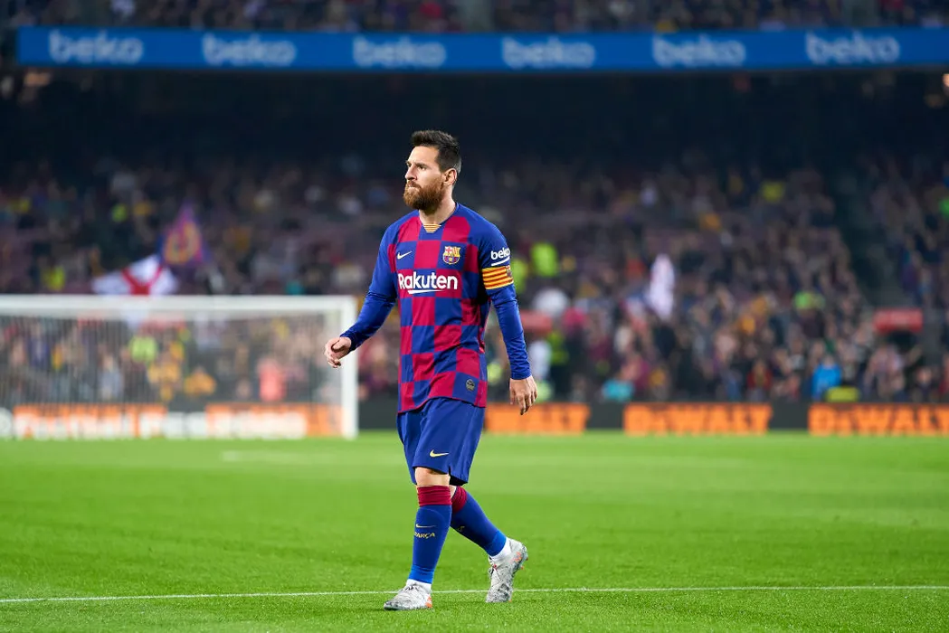 BARCELONA, SPAIN - OCTOBER 29: Lionel Messi of FC Barcelona looks on during the Liga match between FC Barcelona and Real Valladolid CF at Camp Nou on October 29, 2019 in Barcelona, Spain. (Photo by Quality Sport Images/Getty Images)