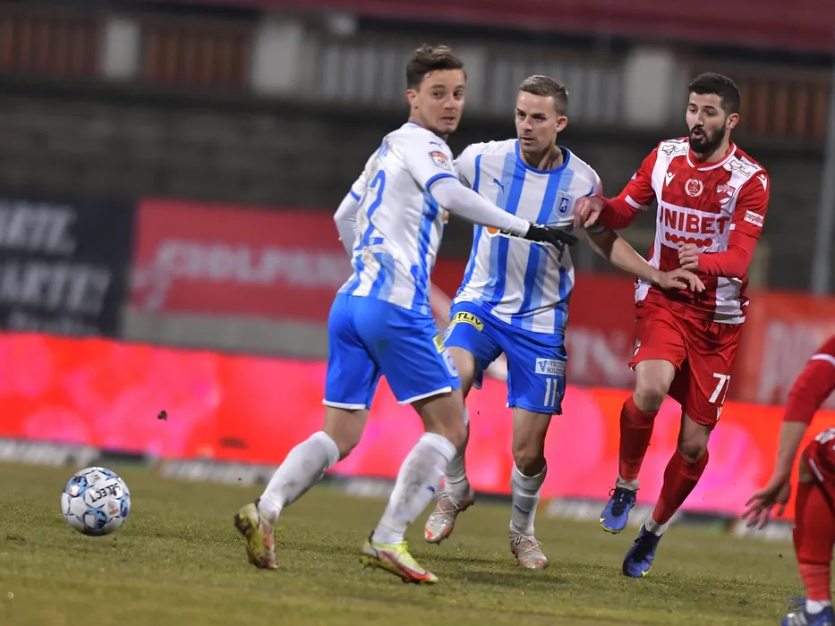 Gustavo Vagenin, Nicusor Silviu Bancu si Alin Florian Buleica in meciul de fotbal dintre Dinamo Bucuresti si Universitatea Craiova, contand pentru Liga 1 Casa Pariurilor, desfasurat pe Stadionul Dinamo din Bucuresti, joi 10 februarie 2022. © FOTO:Razvan Pasarica/SPORT PICTURES