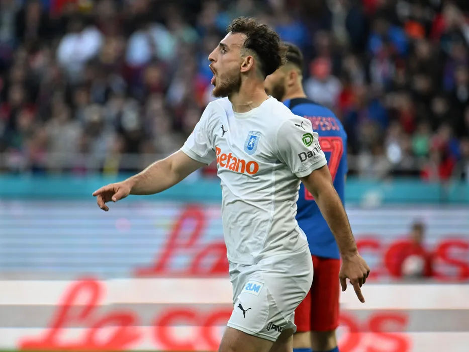 Anzor Mekvabishvili se bucură dupa un gol anulat marcat in meciul de fotbal dintre FCSB si Universitatea Craiova, din cadrul Play off-ului Superligii Superbet, desfasurat pe Arena Nationala din Bucuresti, sambata 17 mai 2025. © FOTO:Razvan Pasarica/SPORT PICTURES