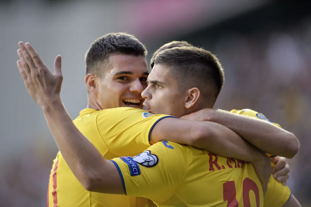 Jucatorii nationalei de fotbal a Romaniei reactioneaza dupa inscrierea unui gol in timpul meciului contra selectionatei Maltei din Grupa F a preliminariilor Euro 2020, disputat pe stadionul Ilie Oana din Ploiesti, duminica, 8 septembrie 2019. EDUARD VINATORU / MEDIAFAX FOTO