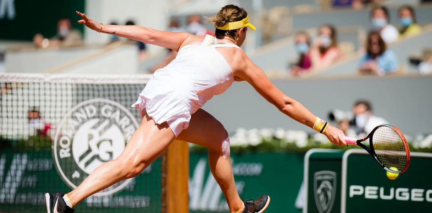 Anastasia Pavlyuchenkova of Russia in action during the semi-final of the 2021 Roland Garros Grand Slam Tournament