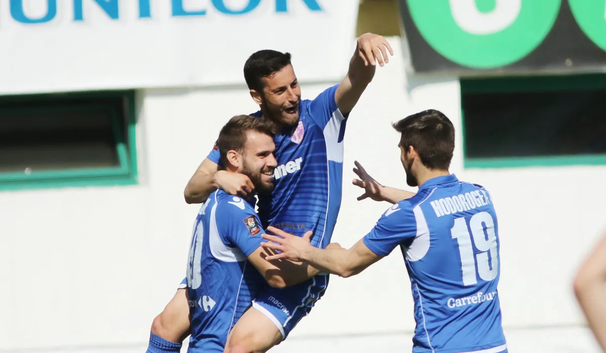 Alexandru Tudorie (S) si Ricardinho (C), de la FC Voluntari, reactioneaza dupa inscrierea unui gol in timpul meciului de fotbal contra echipei CS Concordia Chiajna din etapa a III-a a play-out-ului Ligii 1, disputat pe stadionul Concordia din Chiajna, duminica, 31 martie 2019. GEORGE FILIP / MEDIAFAX FOTO