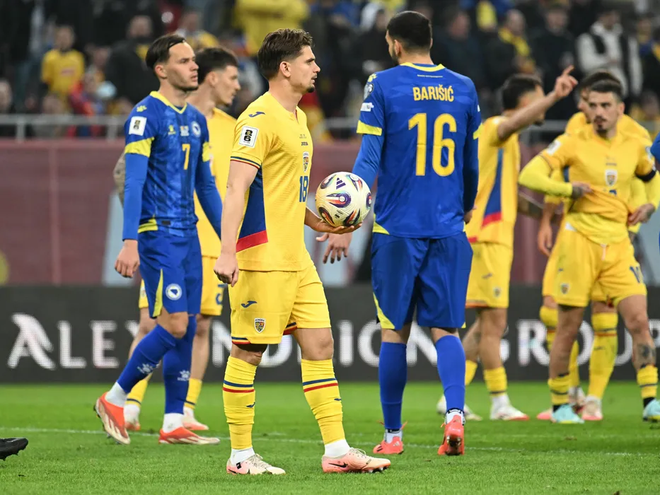 Răzvan Marin se pregateste sa execute un penalty in meciul de fotbal dintre Romania si Bosnia Hertegovina, din cadrul Preliminariilor Campionatului Mondial 2026, desfasurat pe Arena Nationala din Bucuresti, vineri 21 martie 2025. © FOTO:Razvan Pasarica/SPORT PICTURES