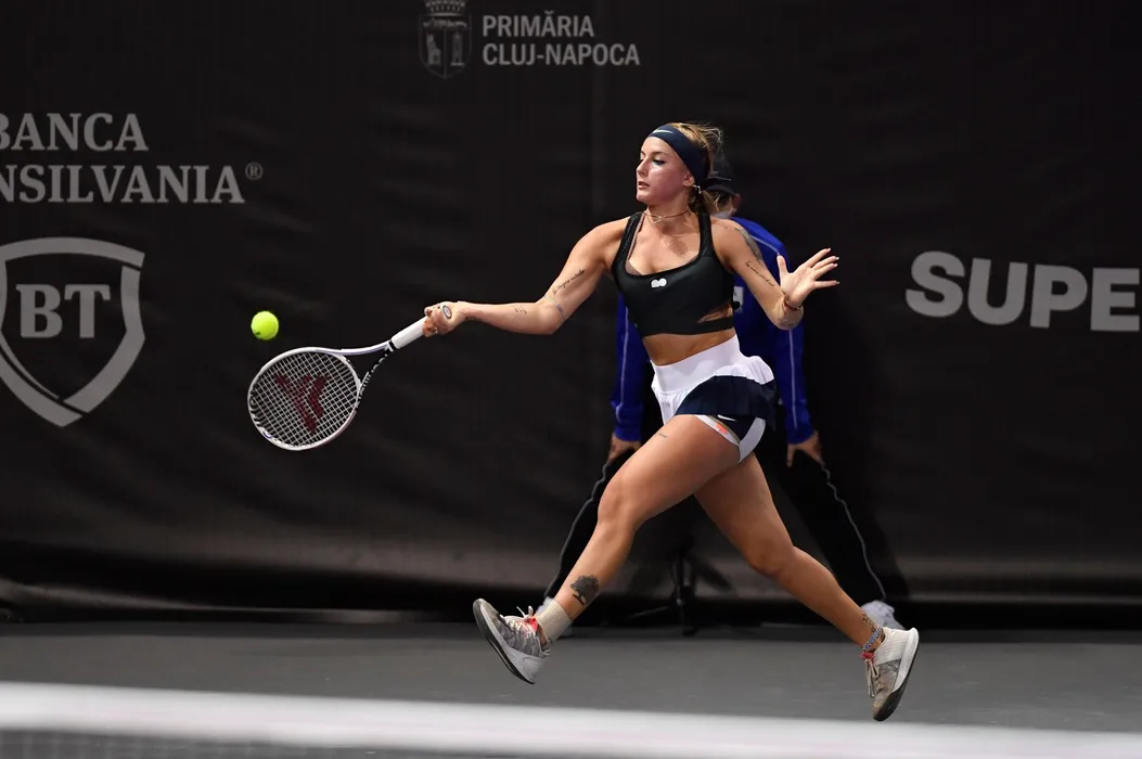 Andreea Prisacariu in action - receiving the ball during her match against Lesia Tsurenko on the third day of WTA 250 Transylvania Open Tour held in BT Arena, Cluj-Napoca 25 October 2021