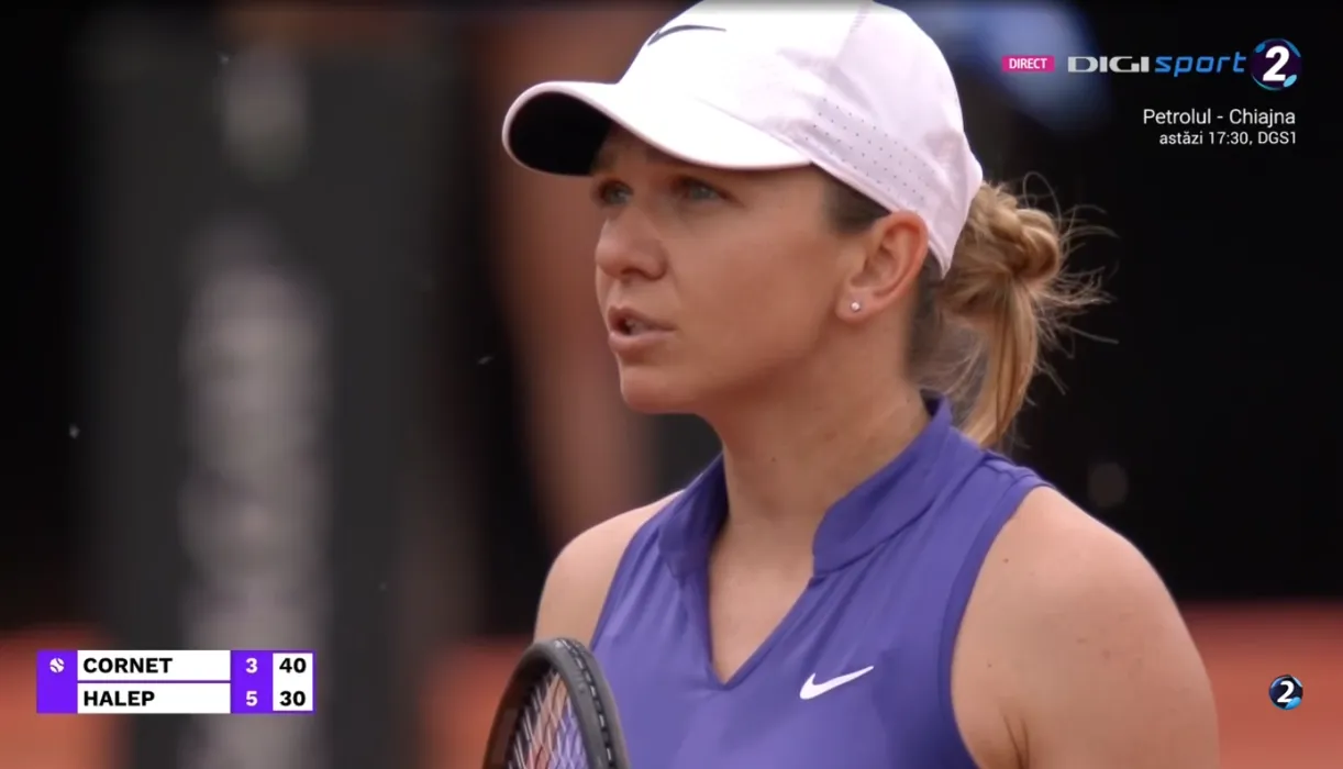 Simona Halep a protestat la decizia arbitrului în meciul cu Alize Cornet de la Roma! Fază controversată într-un moment foarte important | FOTO & VIDEO