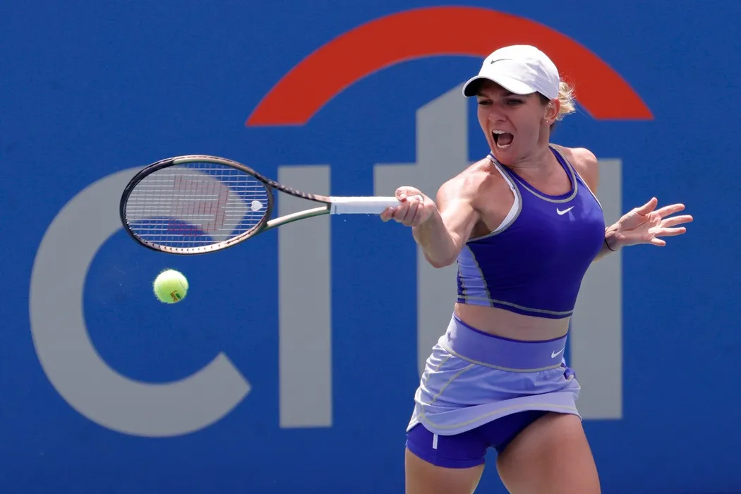 Aug 1, 2022; Washington, DC, USA; Simona Halep (ROU) hits a forehand against Cristina Busca (ESP)(not pictured) on day one of the Citi Open at Rock Creek Park Tennis Center.,Image: 711257327, License: Rights-managed, Restrictions: *** World Rights ***, Model Release: no, Credit line: Profimedia