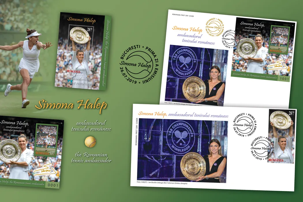„Simona Halep, ambasadorul tenisului românesc”, emisiune de mărci poștale specială după triumful elevei lui Daniel Dobre la Wimbledon