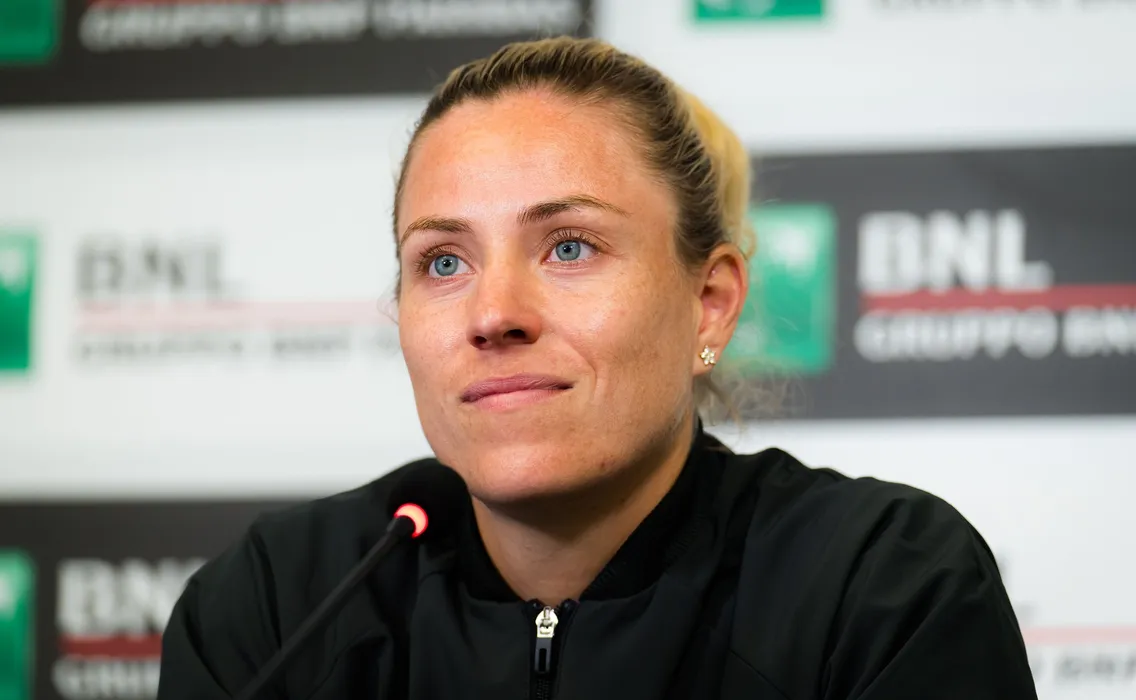 Angelique Kerber of Germany talks to the media after the second round of the 2021 Internazionali BNL d'Italia WTA 1000 tournament