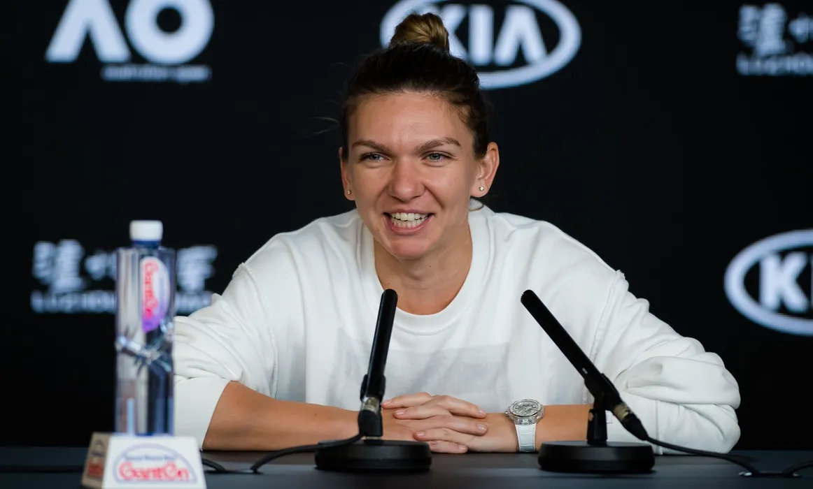 Simona Halep of Romania talks to the media after winning her quarter final match at the 2020 Australian Open Grand Slam tennis tournament