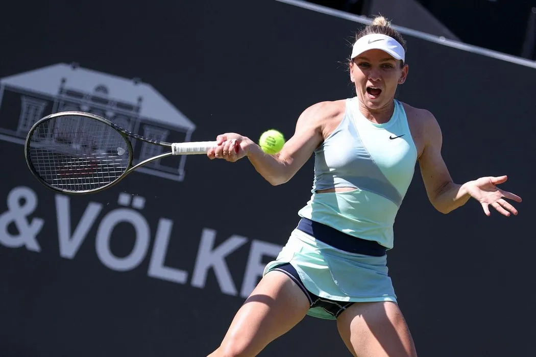 21 June 2022, Hessen, Bad Homburg: Tennis: WTA Tour, singles, women, 1st round, sixteenth final, Haleb (Romania) - Siniakova (Czech Republic). Simona Haleb plays a forehand. Photo: Joaquim Ferreira/dpa,Image: 701603193, License: Rights-managed, Restrictions: GERMANY OUT, Model Release: no, Credit line: Profimedia