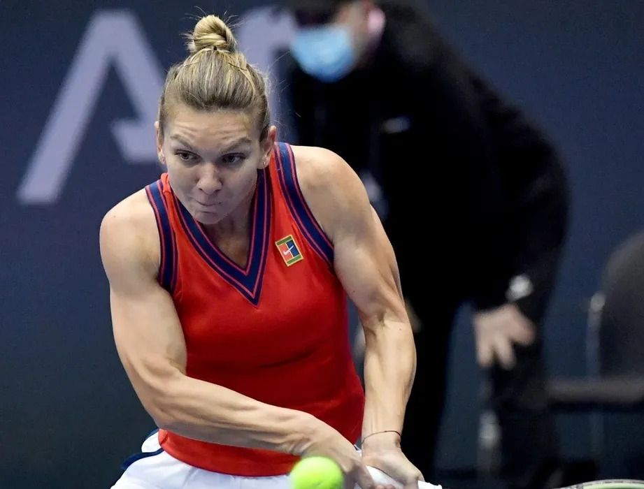Romania's Simona Halep returns the ball to Belarus' Aliaksandra Sasnovich during their women's singles match of the WTA Upper Austria Ladies tennis tournament in Linz, Austria on November 9, 2021.,Image: 642357985, License: Rights-managed, Restrictions: Austria OUT