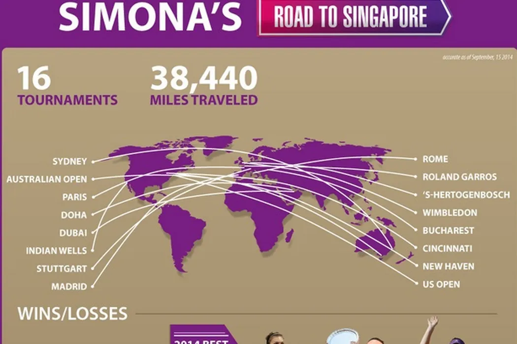 Simona Halep, felicitată de WTA pentru calificarea la Turneul Campioanelor printr-o infografie specială: 61.849 de kilometri parcurși și 6 rezultate de pus în ramă