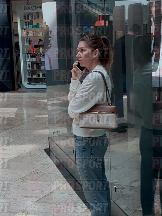 Simona Halep, îngândurată la shopping. Șoferul i-a cărat cumpărăturile, în timp ce ea se ocupa de afaceri prin telefon
