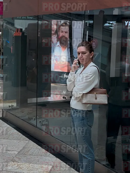 Simona Halep, îngândurată la shopping. Șoferul i-a cărat cumpărăturile, în timp ce ea se ocupa de afaceri prin telefon