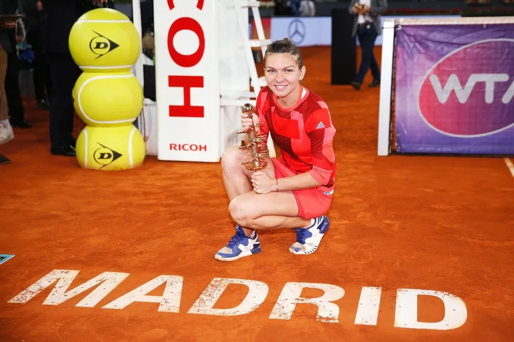 Simona Halep (ROU), MAY 7, 2016 - Tennis : Simona Halep of Romania to show off the trophy after winning singls final match against Dominika Cibulkova of Slovakia on the WTA Tour Mutua Madrid Open tennis tournament at the Caja Magica in Madrid, Spain, May 7, 2016. (Photo by Mutsu Kawamori/AFLO) [3604], Image: 283806384, License: Rights-managed, Restrictions: No third party sales, Model Release: no, Credit line: Mutsu Kawamori / AFLO / Profimedia
