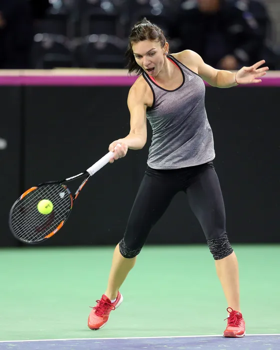 Simona Halep se antreneaza in Sala Polivalenta din Cluj-Napoca, miercuri 3 februarie 2016, inaintea intalnirii, din primul tur al Grupei Mondiale a Fed Cup, dintre Romania si Cehia.