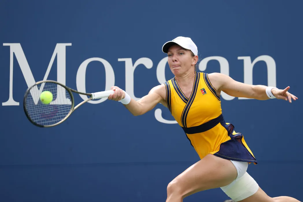 NEW YORK, NEW YORK - AUGUST 30: Simona Halep of Romania returns against Camila Giorgi of Italy during their women's singles first round match on Day One of the 2021 US Open at the Billie Jean King National Tennis Center on August 30, 2021 in the Flushing neighborhood of the Queens borough of New York City. (Photo by Al Bello/Getty Images)