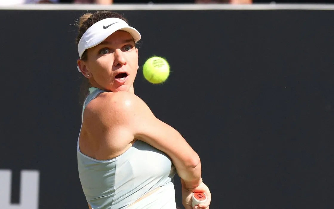 21 June 2022, Hessen, Bad Homburg: Tennis: WTA Tour, singles, women, 1st round, sixteenth final, Haleb (Romania) - Siniakova (Czech Republic). Simona Haleb plays a backhand. Photo: Joaquim Ferreira/dpa,Image: 701603188, License: Rights-managed, Restrictions: GERMANY OUT, Model Release: no, Credit line: Profimedia