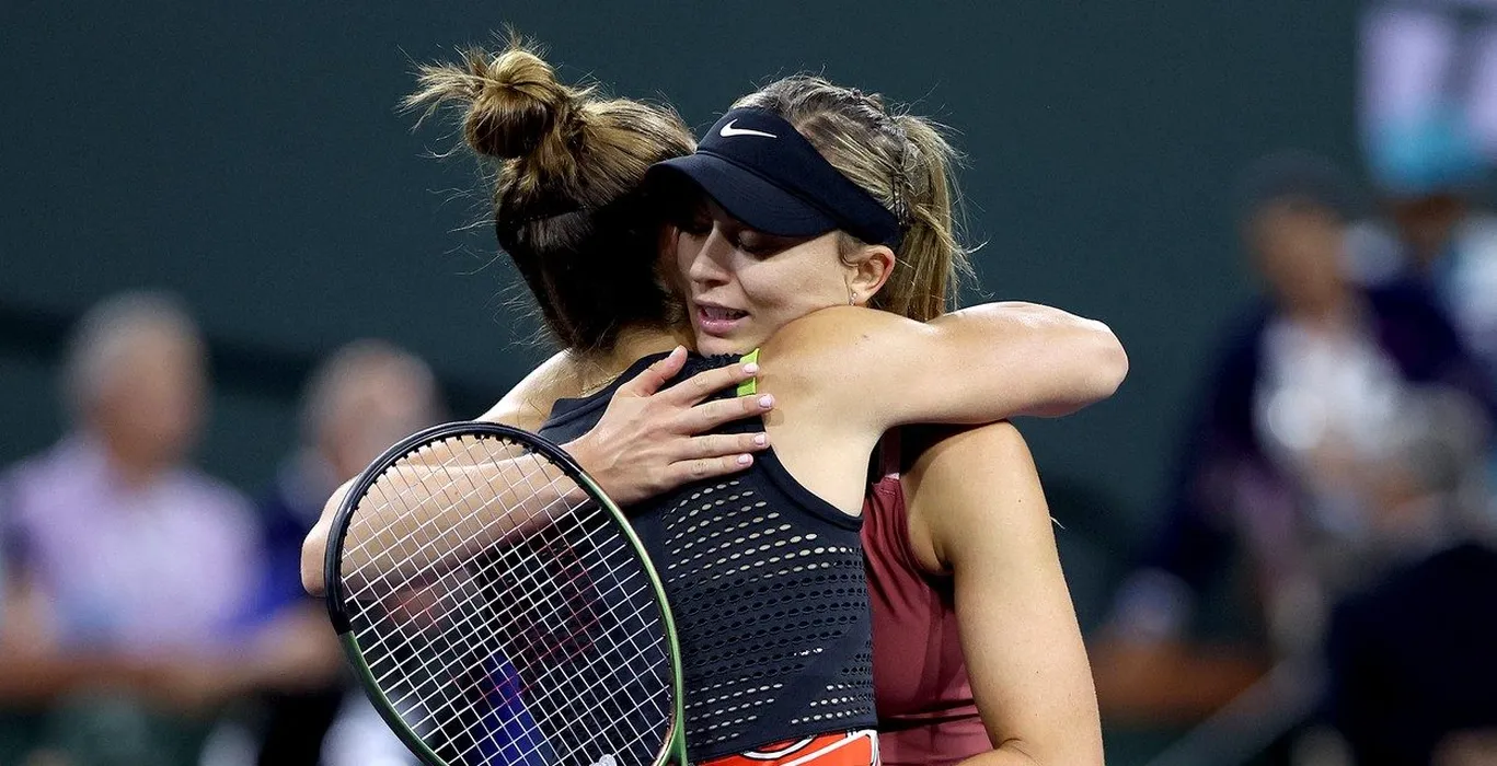 INDIAN WELLS, CALIFORNIA - MARCH 18: Maria Sakkari of Greece is congratulated by Paula Badosa of Spain during the semifinals of the BNP Paribas Open at the Indian Wells Tennis Garden on March 18, 2022 in Indian Wells, California. Matthew Stockman,Image: 671792135, License: Rights-managed, Restrictions: , Model Release: no, Credit line: Profimedia
