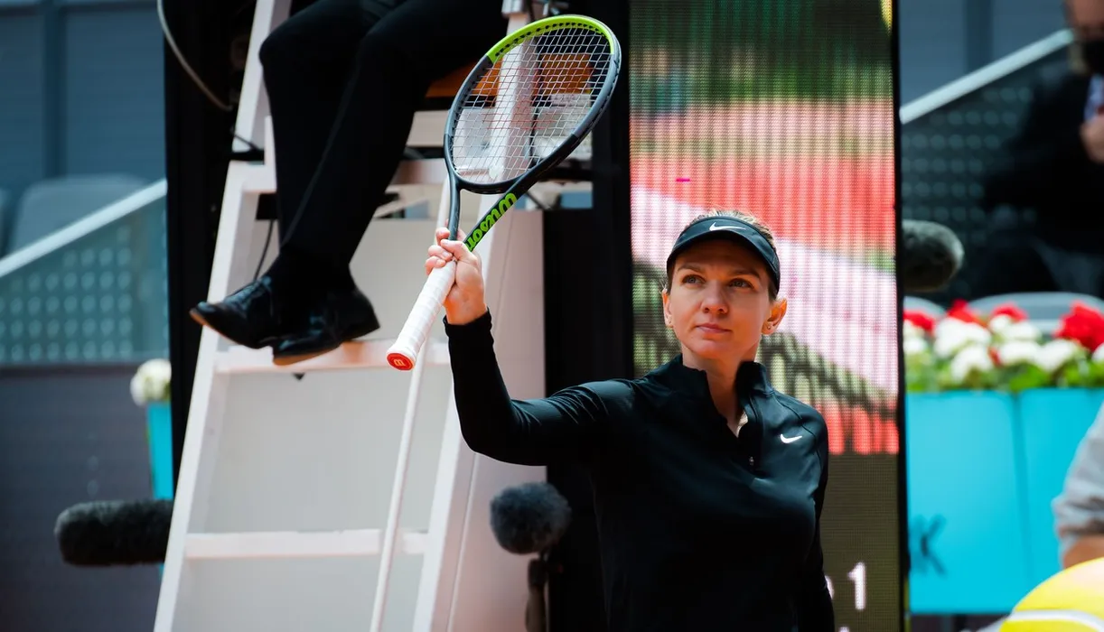 Simona Halep of Romania during her first round match at the 2021 Mutua Madrid Open WTA 1000 tournament