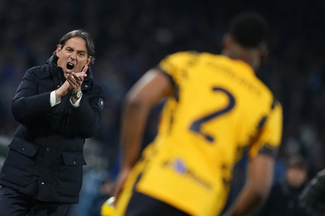 01 March 2025, Italy, Naples: Inter Milan head coach Simone Inzaghi gestures on the touchline during the Italian Serie A soccer match between SSC Napoli and Inter Milan at the Diego Armando Maradona Stadium. Photo: Alfredo Falcone/LaPresse via ZUMA Press/dpa