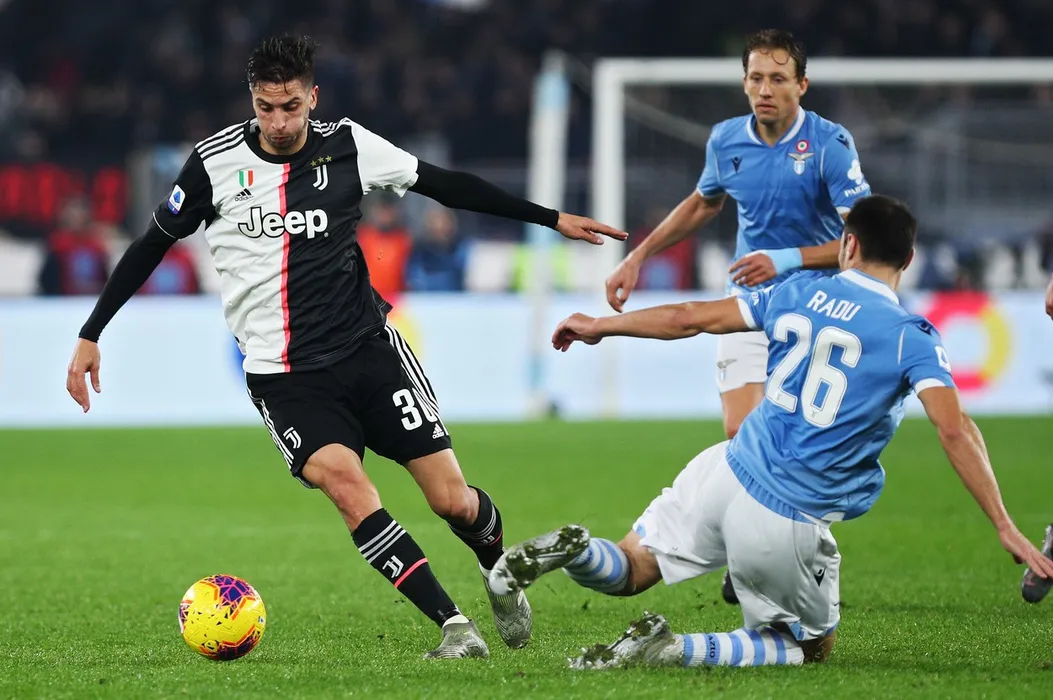 Rodrigo Bentancur of Juventus (L) and Stefan Radu of Lazio (R) in action during the Italian championship Serie A football match between SS Lazio and Juventus on at Stadio Olimpico in Rome, Italy - Photo Federico Proietti/ESPA-Images