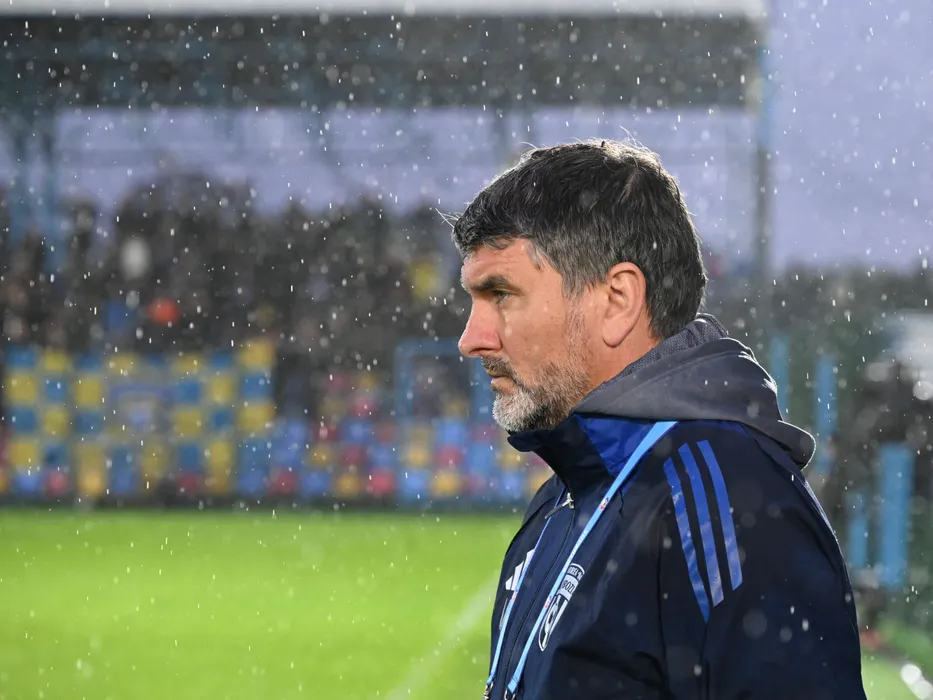 Adrian Mihalcea reacționează la meciul de fotbal dintre FC Voluntari si Unirea Slobozia, barajul tur de mentinere/promovare in Superliga Superbet, desfasurat pe Stadionul Anghel Iordanescu din Voluntari, luni 26 mai 2025. © FOTO:Razvan Pasarica/SPORT PICTURES