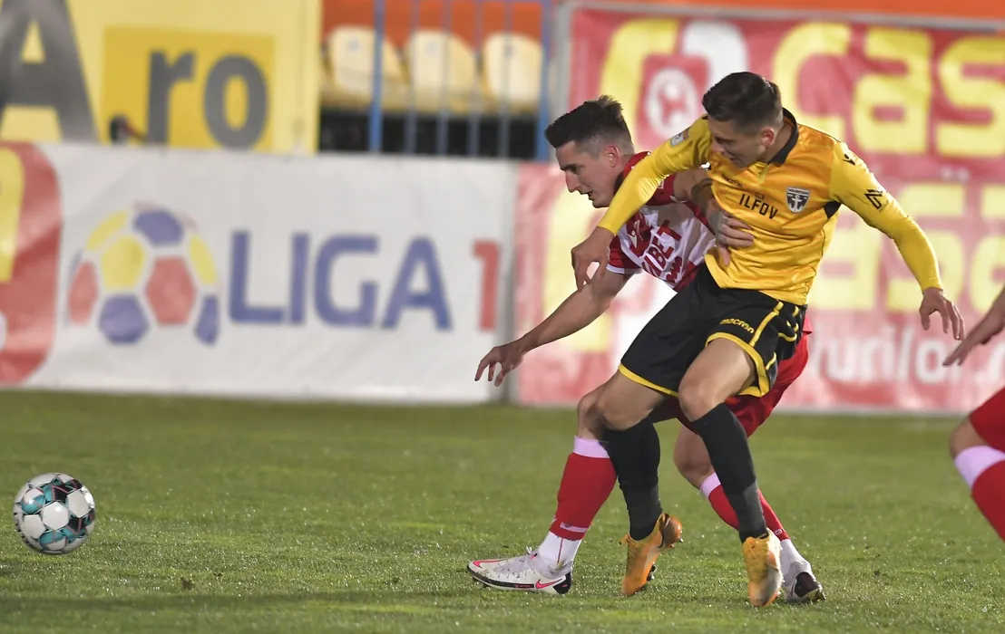 Steliano Filip si Ion Gheorghe in meciul de fotbal dintre FC Voluntari si Dinamo Bucuresti, contand pentru Liga 1 Casa Pariurilor, desfasurat fara spectatori pe Stadionul Anghel Iordanescu din Voluntari, luni 8 martie 2021. © FOTO:Razvan Pasarica/SPORT PICTURES