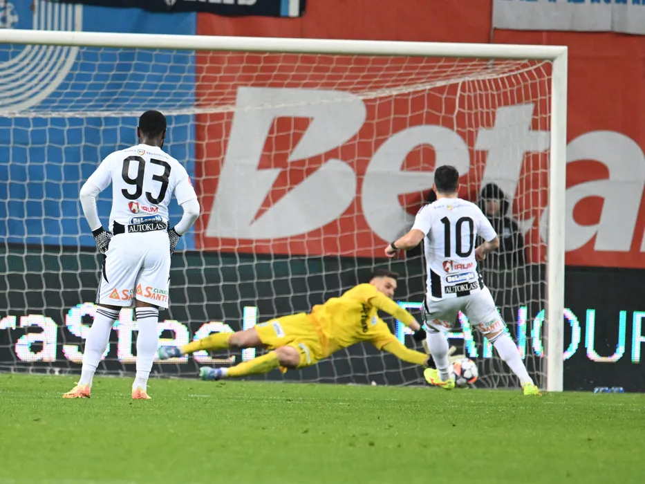 Iulian Laurențiu Popescu apara un penalty executat de catre Dan Nicolae Nistor in meciul dintre Universitatea Craiova si Universitatea Cluj, contand pentru Superliga Superbet, desfasurat pe Stadionul Ion Oblemenco din Craiova, miercuri 5 februarie 2025. © FOTO:Razvan Pasarica/SPORT PICTURES