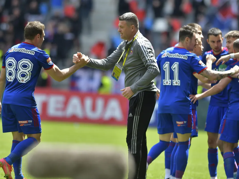 Daniel Oprita si Adrian Popa se bucura dupa un gol stelist marcat in meciul de fotbal dintre Steaua Bucuresti si Unirea Slobozia, contand pentru Play-off-ul Ligii a-2-a Casa Pariurilor, desfasurat pe Stadionul Steaua-Ghencea din Bucuresti, duminica 8 mai 2022. © FOTO:Razvan Pasarica/SPORT PICTURES